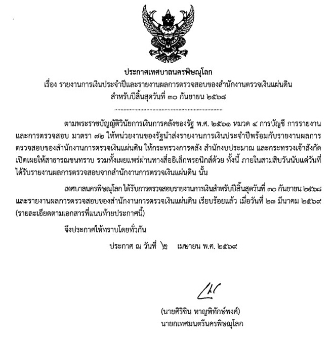 เลขที่/ปี: 2568 02 Apr 2026 หน่วยงานผู้ออก: สำนักคลัง